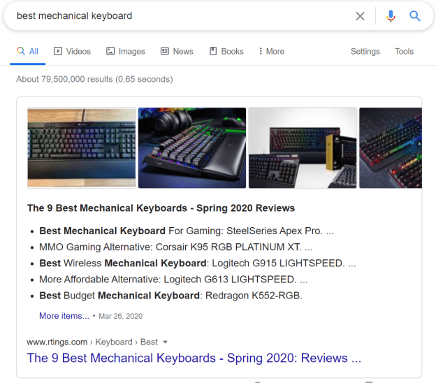 Also, we’ve noticed that top tens lists are extremely effective at being featured on the top results. Something like, “5 reasons why blue mechanical switches are good for gaming”. Make sure to use H2 headings because Google also loves those.
