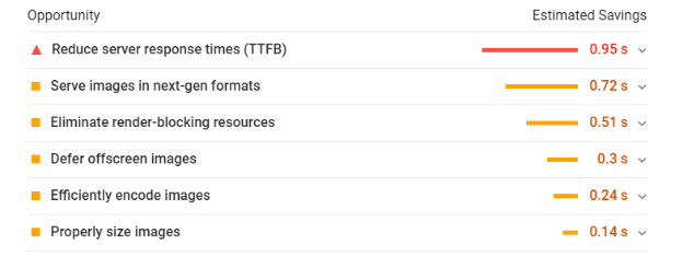 Make sure to check this area to see which areas are most responsible for the website loading speed.